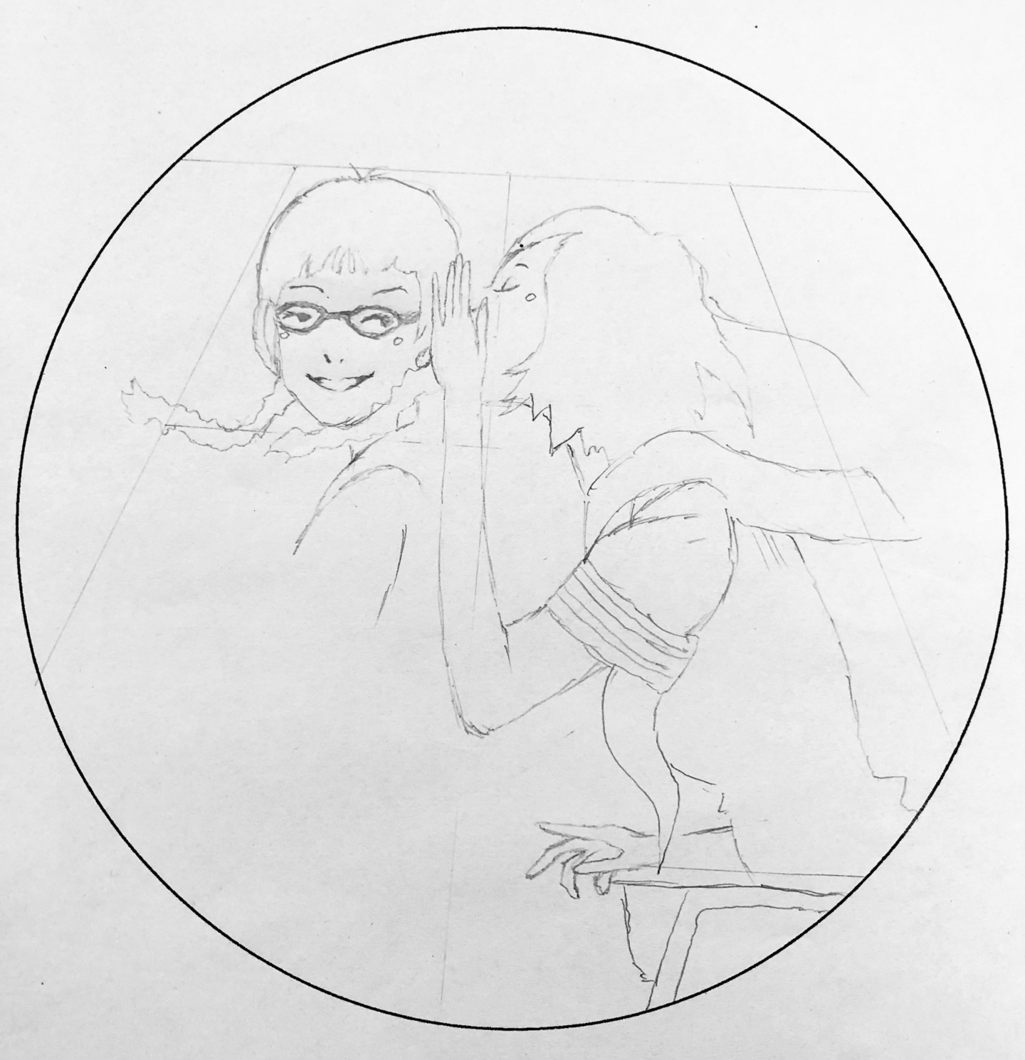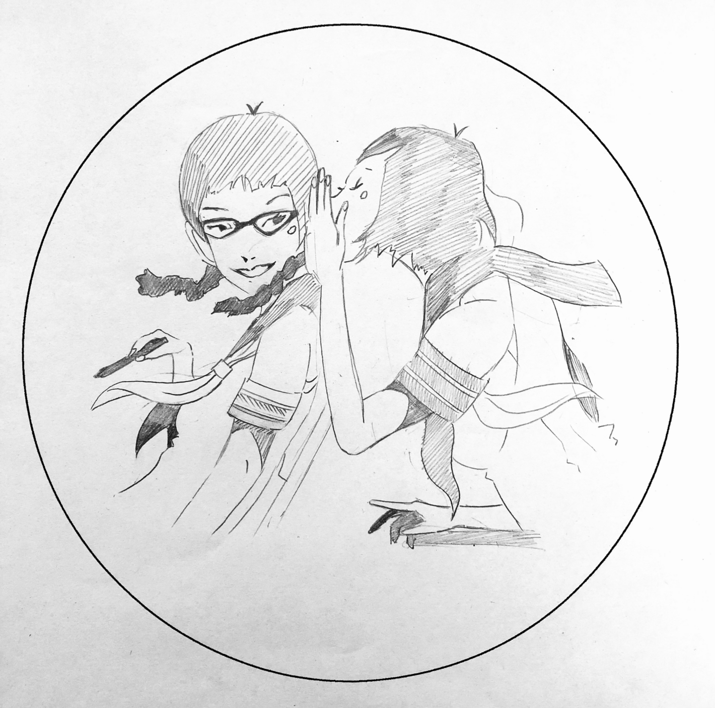 画像は、一番上のイラストレーター中村祐介さんの絵を、二人の高校生が模写したものです。