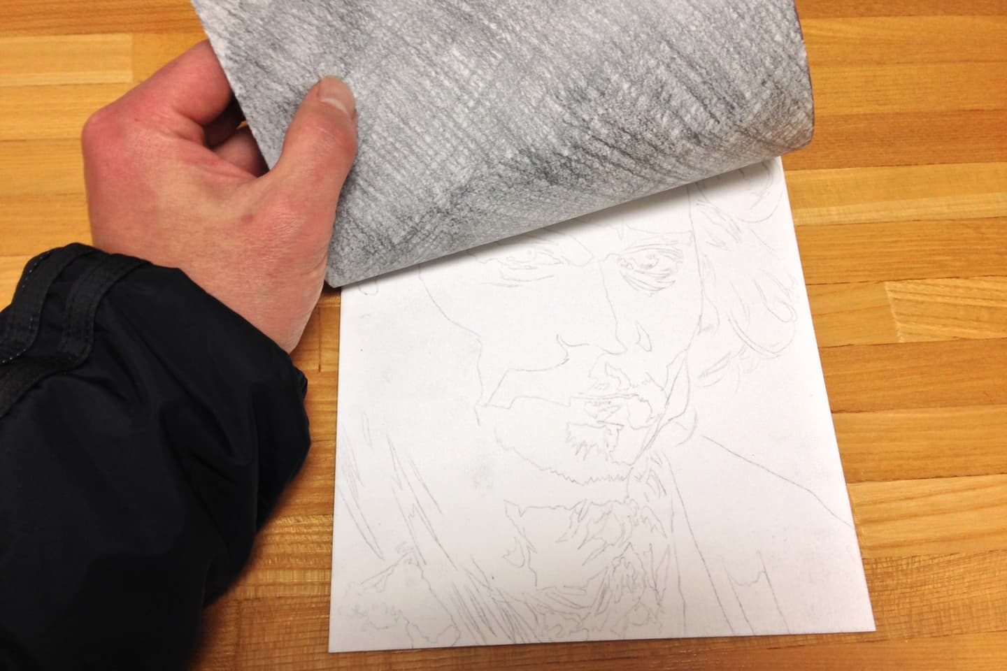 (3)鉛筆で白黒コピーの裏側を黒く塗ります。