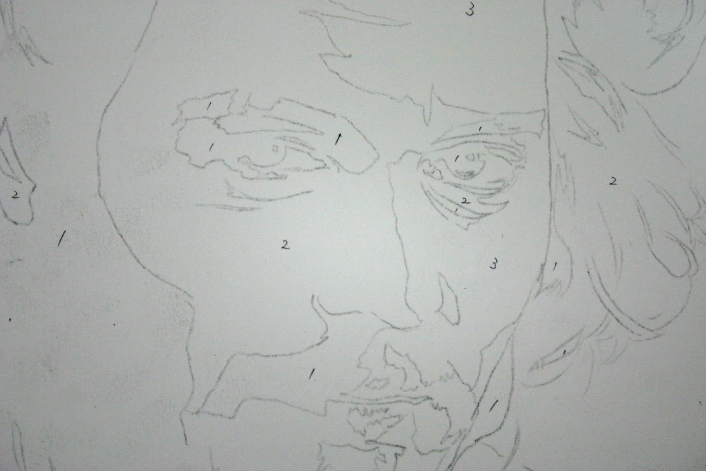 私は油彩で人物を描く時、頭の中ではこの分割を意識しています。