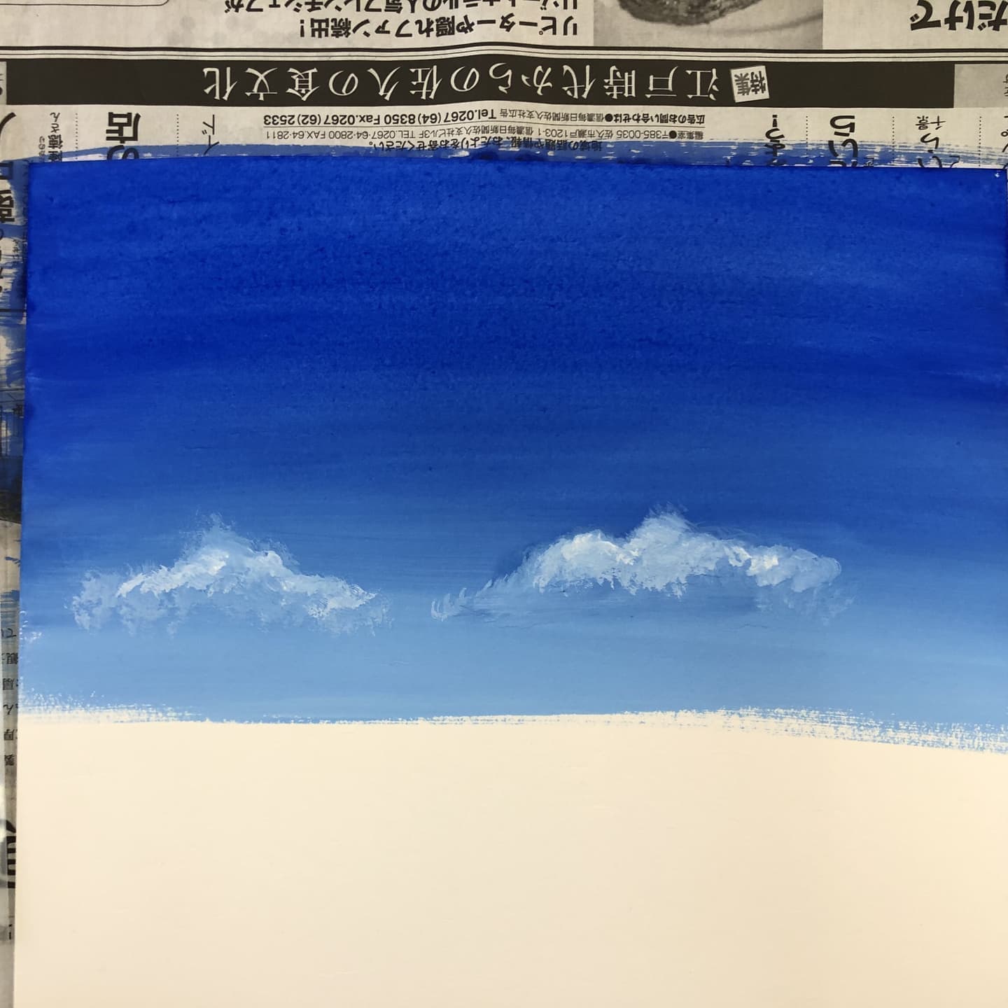 一晩たったら、完全乾燥し、グレージング(液状の絵具を薄くかける)が可能なように。または耐水ペーパーで研磨することもできるように。