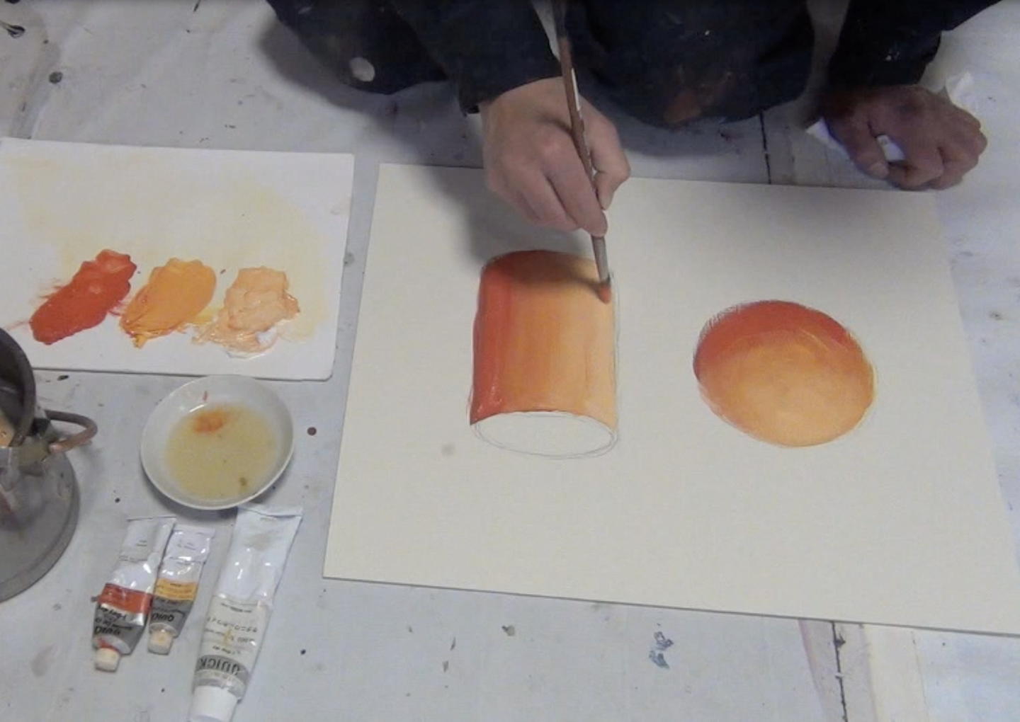 この動画では、油彩で立体的に描く基本的な方法を実演しています。
